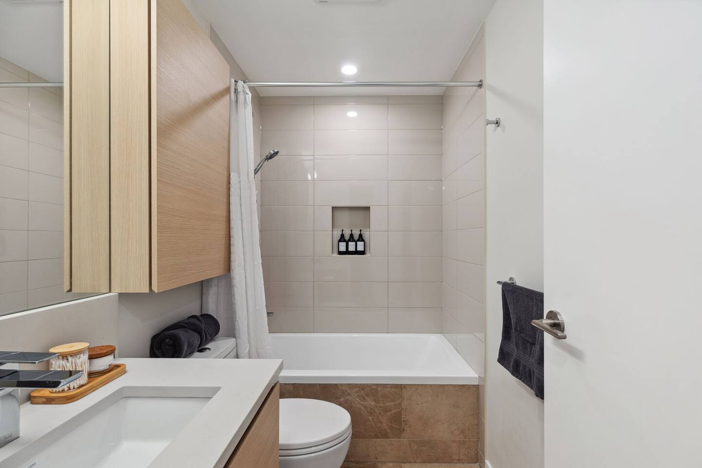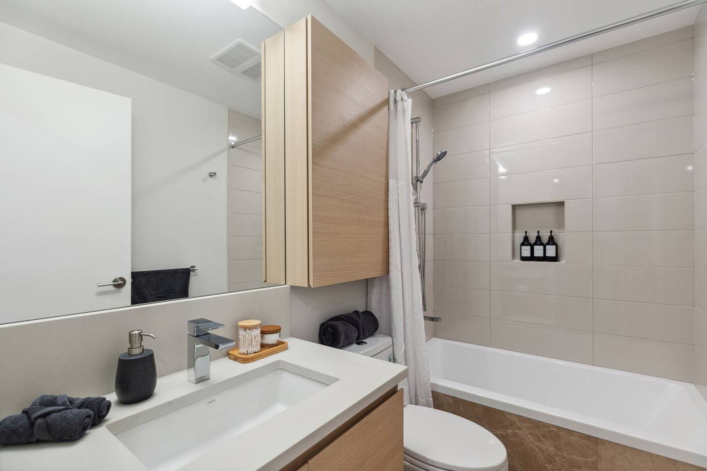 Welcome to your tranquil urban home ! •Eco-Conscious Luxury: 100% organic, eco-friendly body wash, shampoo, and conditioner. •Seamless Connectivity: Ultra-stable high-speed internet dedicated exclusively to your unit. •Personalized Care: A dedicated host is here to meet your every need, from local tips to ensuring your comfort throughout your visit. •Free Laundry Convenience: Complimentary laundry facilities available during your stay. •Effortless Mobility: Located just steps from the SkyTrain !